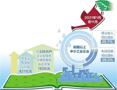 2021年1月至11月,規(guī)模以上中小工業(yè)企業(yè)營業(yè)收入、利潤總額同比分別增長20.7%、28.2%,兩年平均分別增長9.8%、17.1%,體現(xiàn)了中小企業(yè)的韌性和活力。