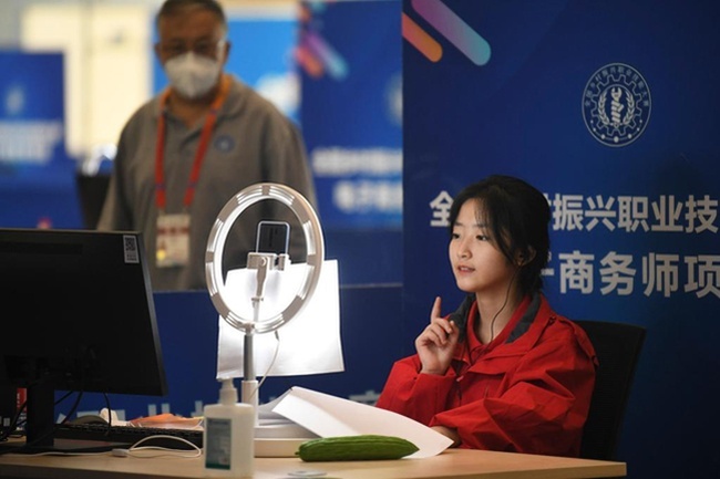 2021年9月26日,選手在烏魯木齊舉辦的全國鄉(xiāng)村振興職業(yè)技能大賽上比拼電子商務(wù)師項目。